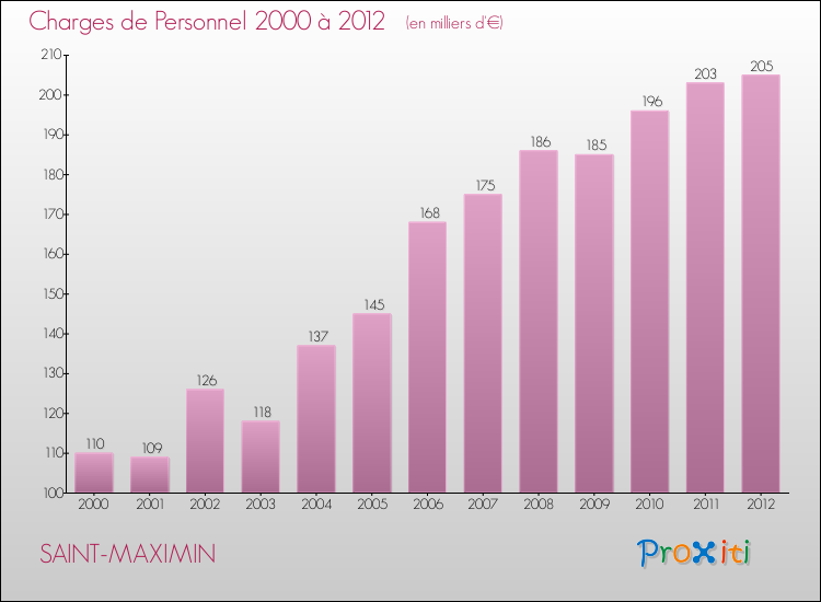 En 2012, le budget de fonctionnement de la commune de Saint-Maximin se montait à : 691 000 € décomposé comme suit :