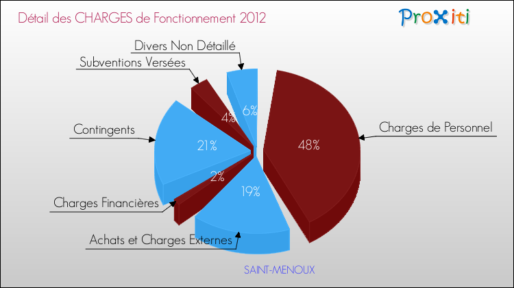En 2012, les charges de fonctionnement de la commune de Saint-Menoux étaient de : 695 000 € décomposées comme suit :