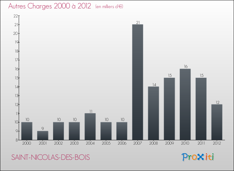 En 2012, les charges de fonctionnement de la commune de Saint-Nicolas-des-Bois étaient de : 90 000 € décomposées comme suit :
