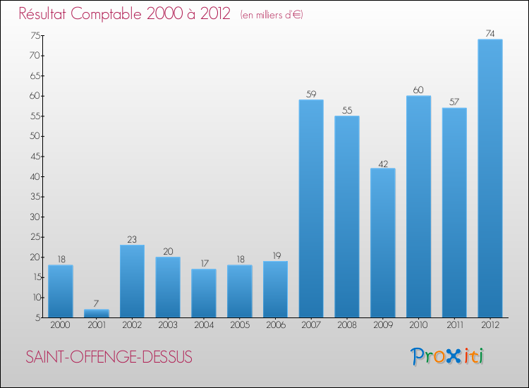 Le résultat comptable de la commune de Saint-Offenge-Dessus s'établissait ainsi à : + 74 000 € fin 2012.