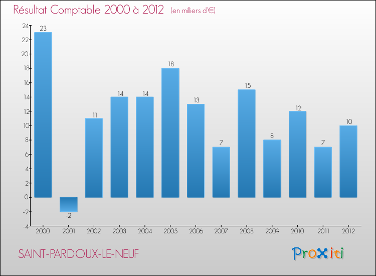 Le résultat comptable de la commune de Saint-Pardoux-le-Neuf s'établissait ainsi à : + 10 000 € fin 2012.