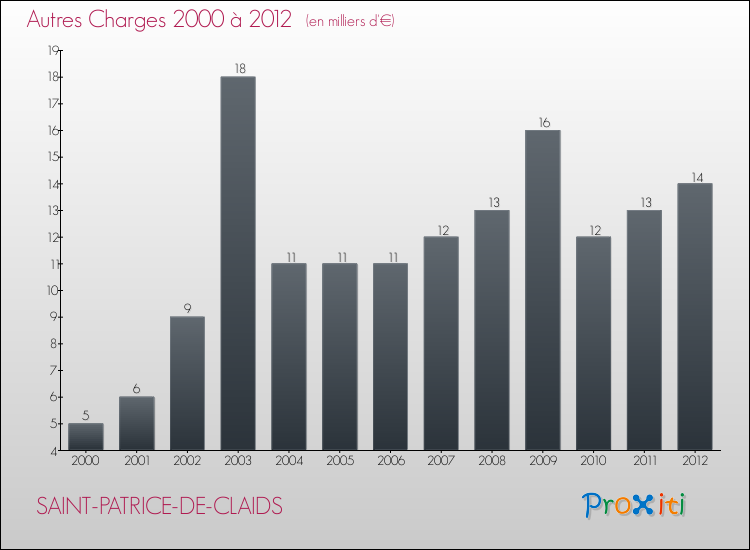 En 2012, les charges de fonctionnement de la commune de Saint-Patrice-de-Claids étaient de : 62 000 € décomposées comme suit :