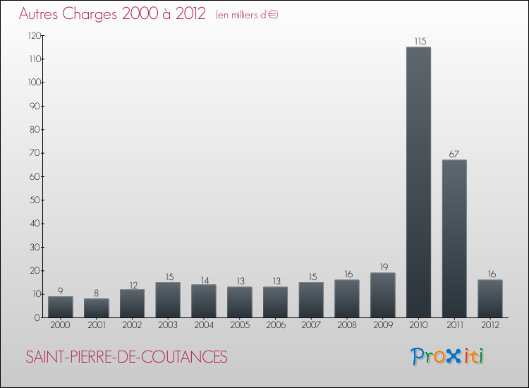 En 2012, les charges de fonctionnement de la commune de Saint-Pierre-de-Coutances étaient de : 75 000 € décomposées comme suit :