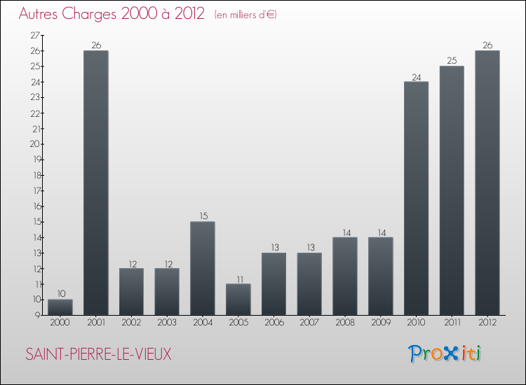 En 2012, les charges de fonctionnement de la commune de Saint-Pierre-le-Vieux étaient de : 196 000 € décomposées comme suit :