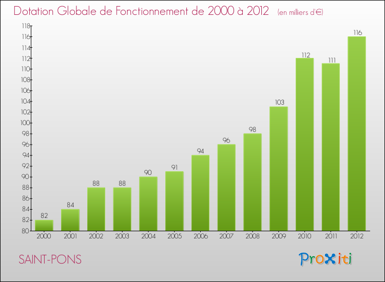 En 2012, les charges de fonctionnement de la commune de Saint-Pons étaient de : 441 000 € décomposées comme suit :