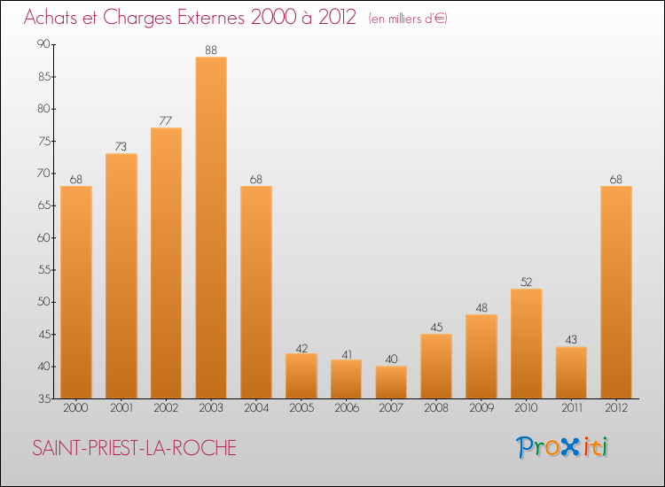En 2012, les charges de fonctionnement de la commune de Saint-Priest-la-Roche étaient de : 225 000 € décomposées comme suit :