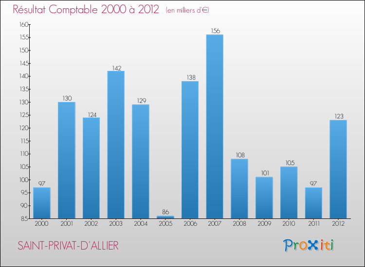Le résultat comptable de la commune de Saint-Privat-d'Allier s'établissait ainsi à : + 123 000 € fin 2012.