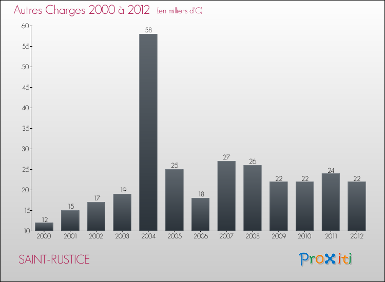 En 2012, les charges de fonctionnement de la commune de Saint-Rustice étaient de : 328 000 € décomposées comme suit :