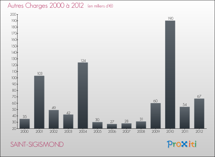 En 2012, les charges de fonctionnement de la commune de Saint-Sigismond étaient de : 591 000 € décomposées comme suit :