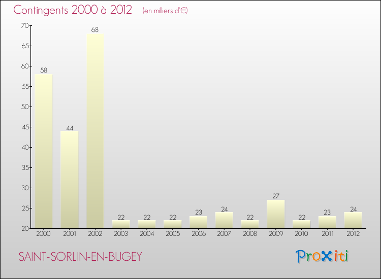 En 2012, le budget de fonctionnement de la commune de Saint-Sorlin-en-Bugey se montait à : 686 000 € décomposé comme suit :