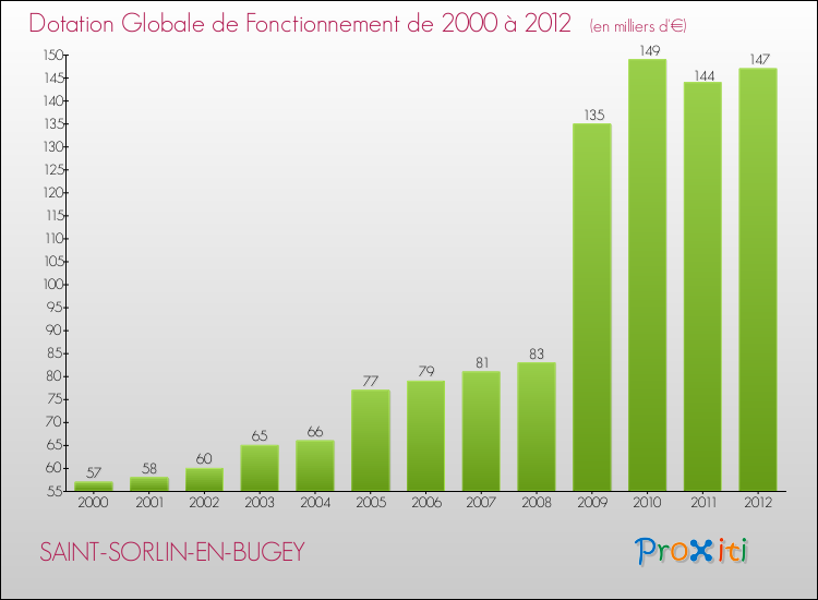 Le résultat comptable de la commune de Saint-Sorlin-en-Bugey s'établissait ainsi à : + 144 000 € fin 2012.