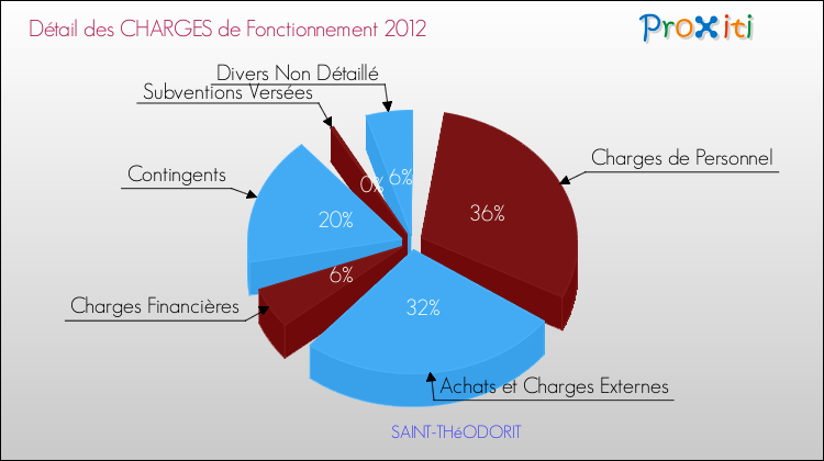 En 2012, les charges de fonctionnement de la commune de Saint-Théodorit étaient de : 208 000 € décomposées comme suit :