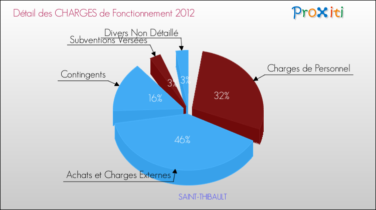 En 2012, les charges de fonctionnement de la commune de Saint-Thibault étaient de : 496 000 € décomposées comme suit :