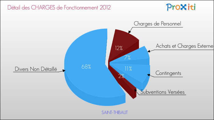 En 2012, les charges de fonctionnement de la commune de Saint-Thibaut étaient de : 57 000 € décomposées comme suit :