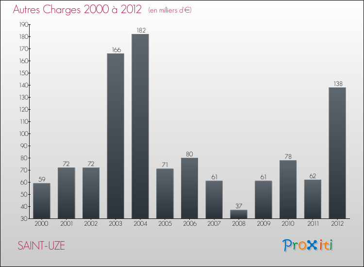 En 2012, les charges de fonctionnement de la commune de Saint-Uze étaient de : 933 000 € décomposées comme suit :
