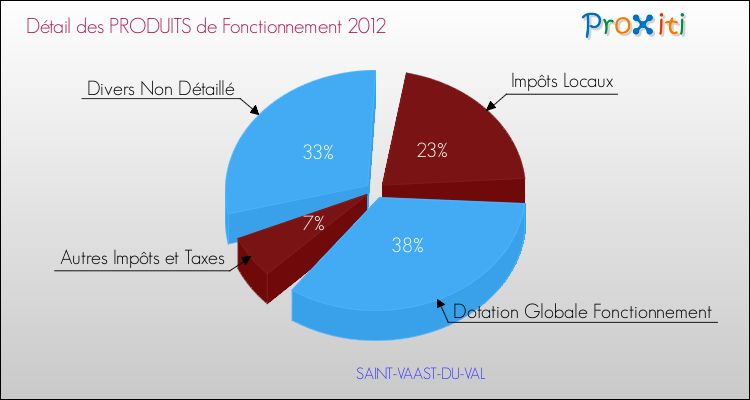 En 2012, le budget de fonctionnement de la commune de Saint-Vaast-du-Val se montait à : 215 000 € décomposé comme suit :