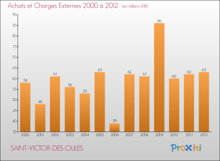 En 2012, les charges de fonctionnement de la commune de Saint-Victor-des-Oules étaient de : 189 000 € décomposées comme suit :