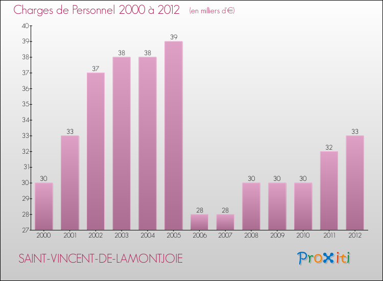 - Charges de Personnel (principalement pour payer les employés municipaux) : 33 000 €
