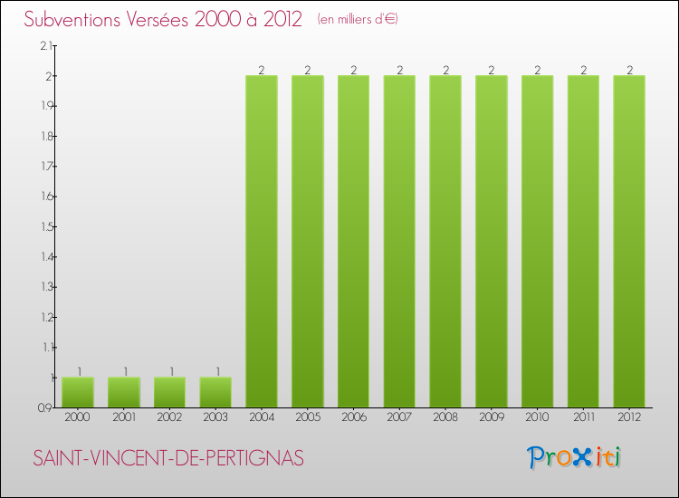 Le résultat comptable de la commune de Saint-Vincent-de-Pertignas s'établissait ainsi à : + 74 000 € fin 2012.