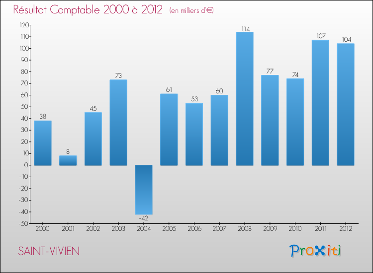 Le résultat comptable de la commune de Saint-Vivien s'établissait ainsi à : + 104 000 € fin 2012.
