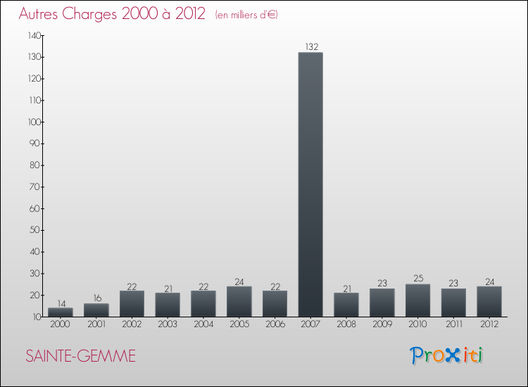En 2012, les charges de fonctionnement de la commune de Sainte-Gemme étaient de : 302 000 € décomposées comme suit :