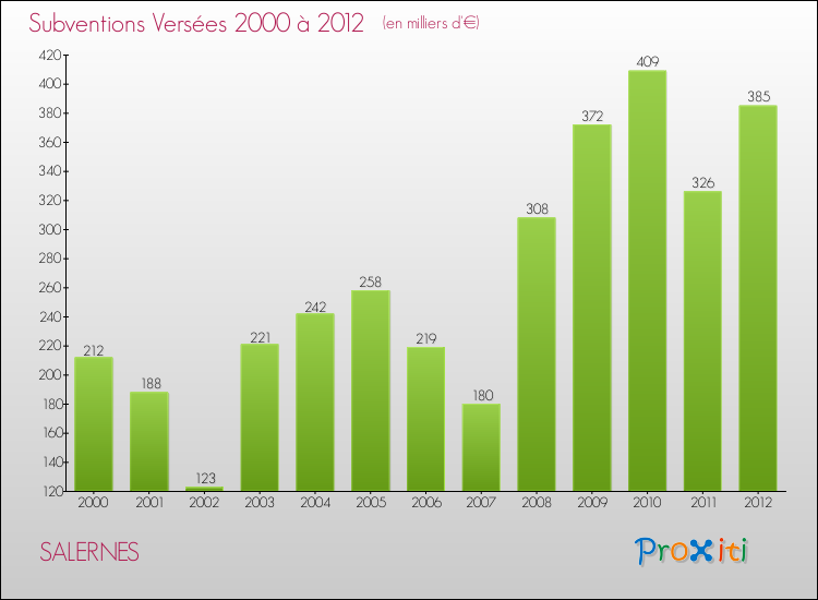 Evolution du résultat comptable pour SALERNES de 2000 à 2012