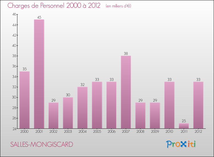 Le résultat comptable de la commune de Salles-Mongiscard s'établissait ainsi à : -26 000 € fin 2012 (recettes-dépenses).