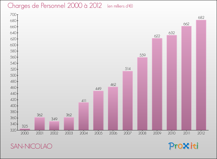 En 2012, le budget de fonctionnement de la commune de San-Nicolao se montait à : 1 869 000 € décomposé comme suit :