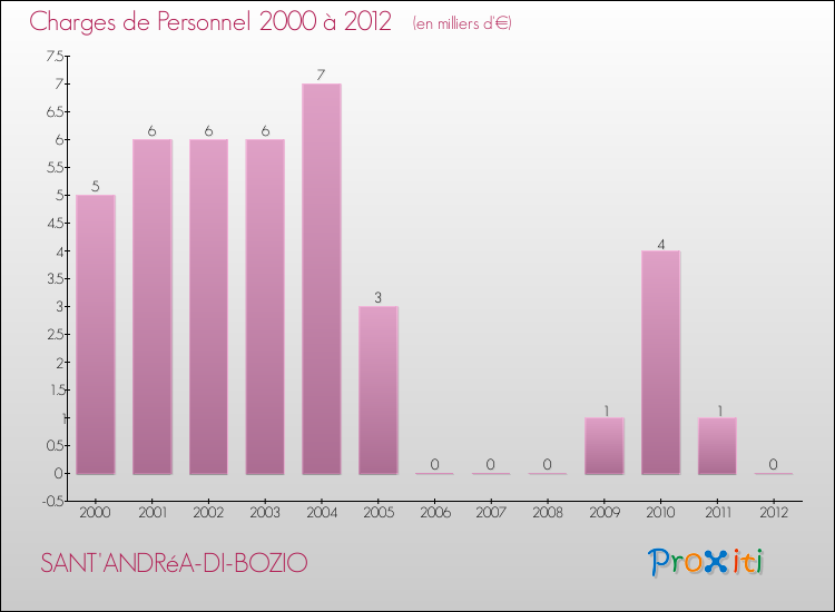 En 2012, les charges de fonctionnement de la commune de Sant'Andréa-di-Bozio étaient de : 66 000 € décomposées comme suit :