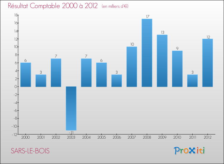 Le résultat comptable de la commune de Sars-le-Bois s'établissait ainsi à : + 12 000 € fin 2012.