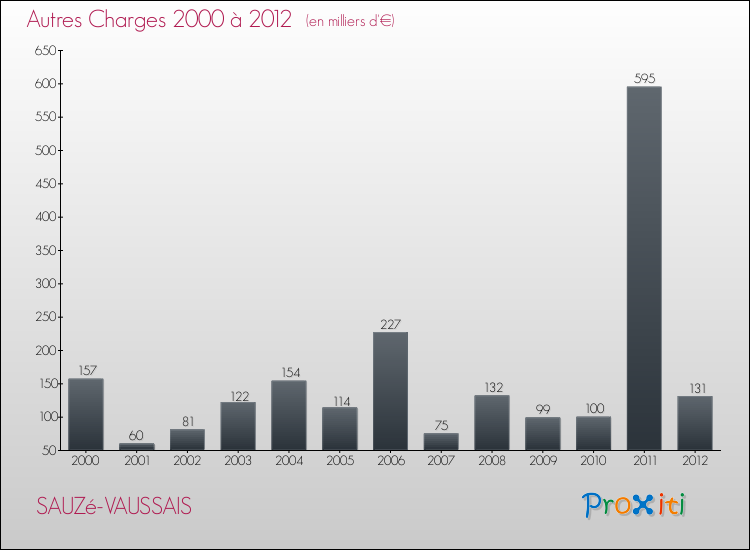 En 2012, les charges de fonctionnement de la commune de Sauzé-Vaussais étaient de : 1 310 000 € décomposées comme suit :