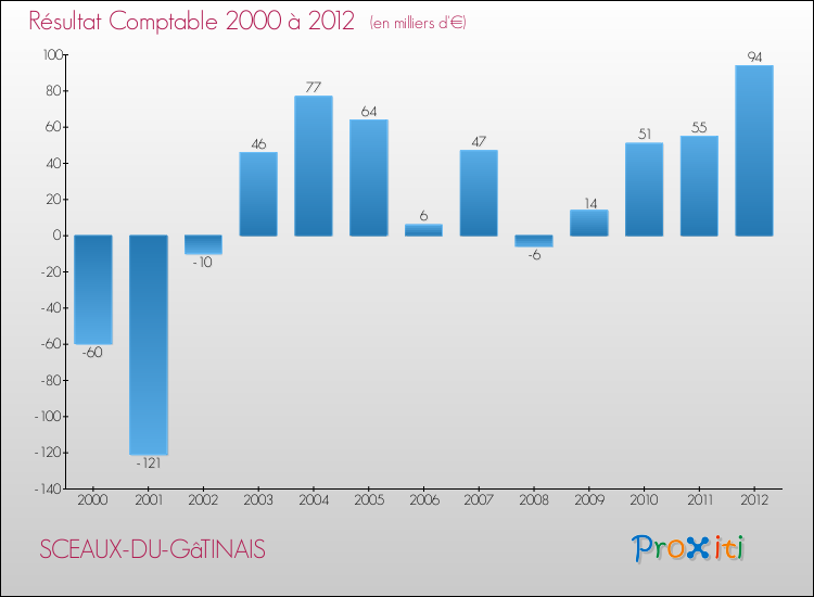 Le résultat comptable de la commune de Sceaux-du-Gâtinais s'établissait ainsi à : + 94 000 € fin 2012.