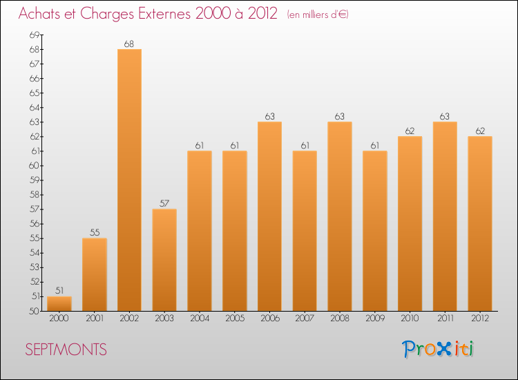 En 2012, les charges de fonctionnement de la commune de Septmonts étaient de : 264 000 € décomposées comme suit :