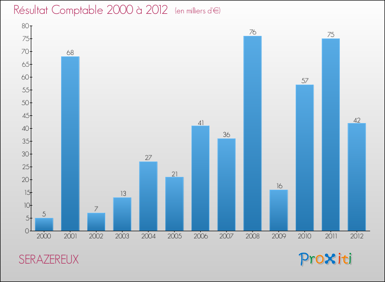 Le résultat comptable de la commune de Serazereux s'établissait ainsi à : + 42 000 € fin 2012.
