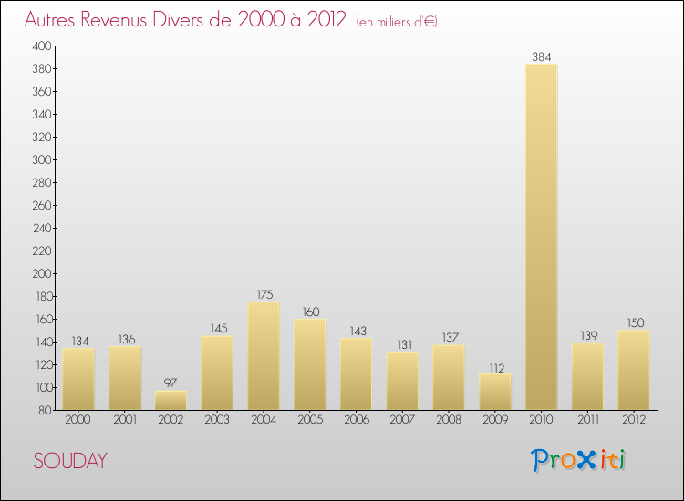 En 2012, le budget de fonctionnement de la commune de Souday se montait à : 474 000 € décomposé comme suit :