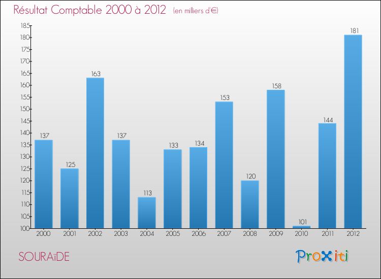 Le résultat comptable de la commune de Souraïde s'établissait ainsi à : + 181 000 € fin 2012.
