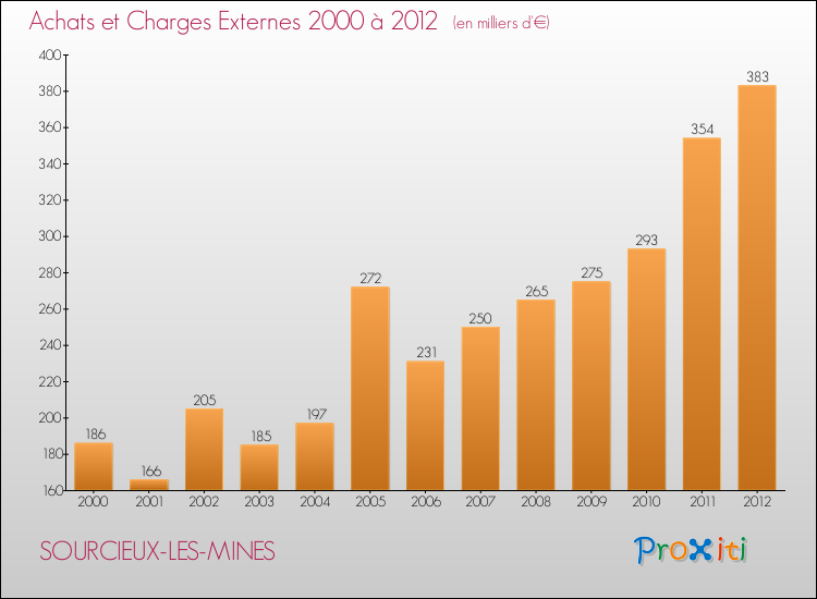 En 2012, les charges de fonctionnement de la commune de Sourcieux-les-Mines étaient de : 977 000 € décomposées comme suit :