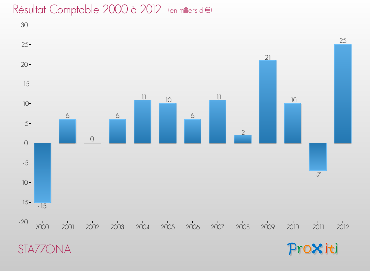Le résultat comptable de la commune de Stazzona s'établissait ainsi à : + 25 000 € fin 2012.