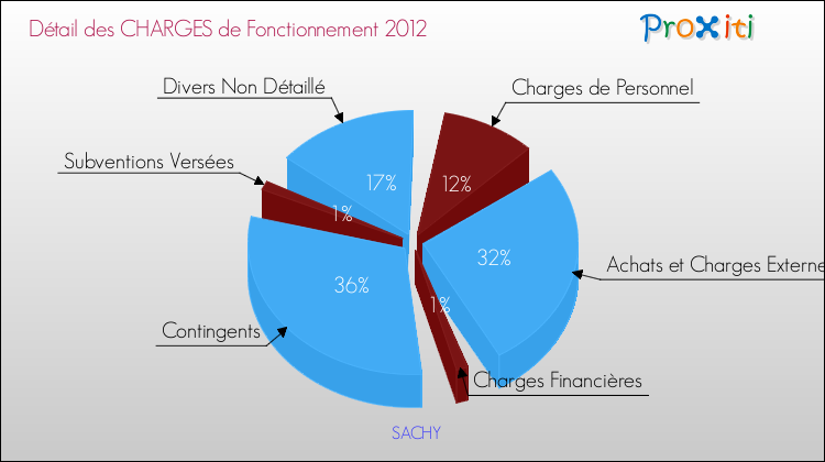 En 2012, les charges de fonctionnement de la commune de Sachy étaient de : 69 000 € décomposées comme suit :