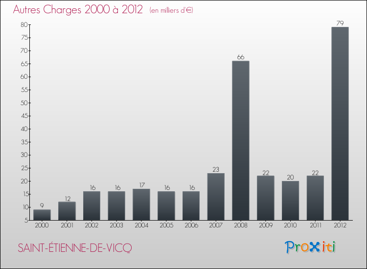 En 2012, les charges de fonctionnement de la commune de Saint-Étienne-de-Vicq étaient de : 268 000 € décomposées comme suit :