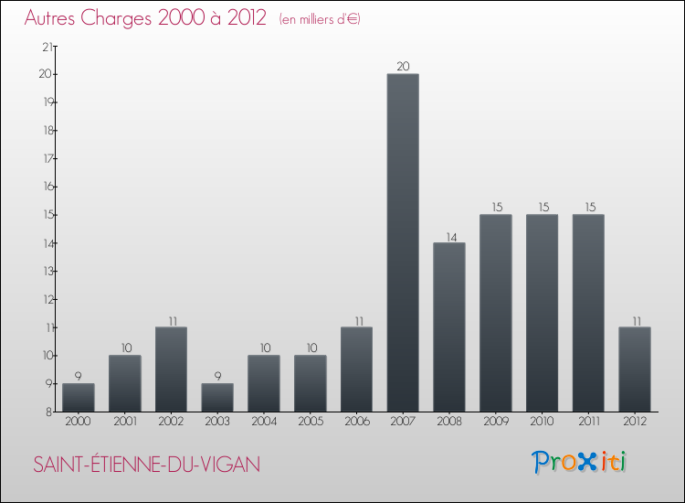 En 2012, les charges de fonctionnement de la commune de Saint-Étienne-du-Vigan étaient de : 99 000 € décomposées comme suit :