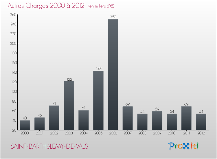 En 2012, les charges de fonctionnement de la commune de Saint-Barthélemy-de-Vals étaient de : 899 000 € décomposées comme suit :