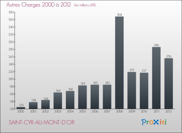 En 2012, les charges de fonctionnement de la commune de Saint-Cyr-au-Mont-d'Or étaient de : 3 253 000 € décomposées comme suit :