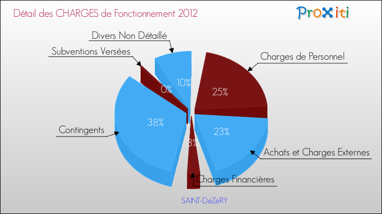 En 2012, les charges de fonctionnement de la commune de Saint-Dézéry étaient de : 203 000 € décomposées comme suit :