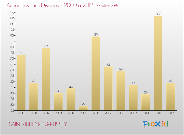 En 2012, le budget de fonctionnement de la commune de Saint-Julien-lès-Russey se montait à : 109 000 € décomposé comme suit :