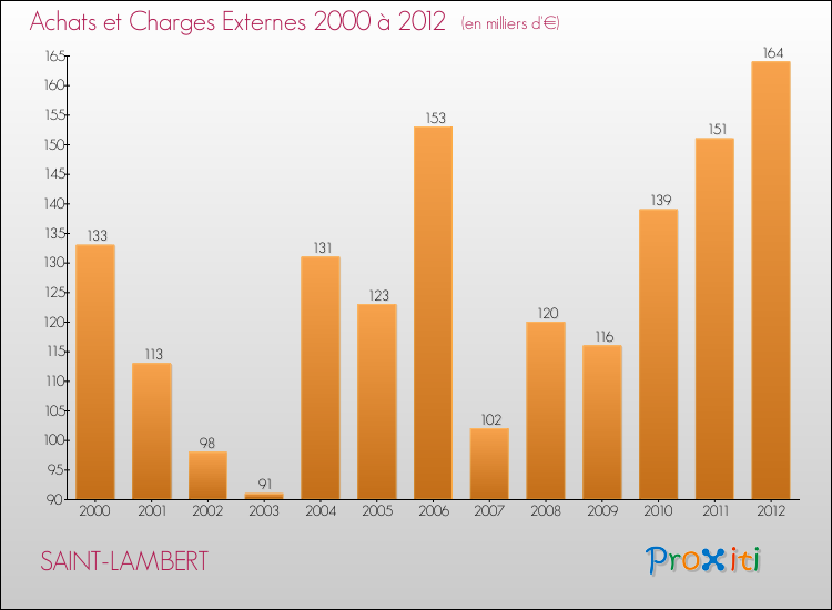 En 2012, les charges de fonctionnement de la commune de Saint-Lambert étaient de : 593 000 € décomposées comme suit :