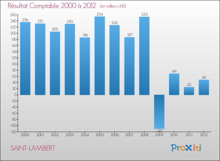 Le résultat comptable de la commune de Saint-Lambert s'établissait ainsi à : + 49 000 € fin 2012.