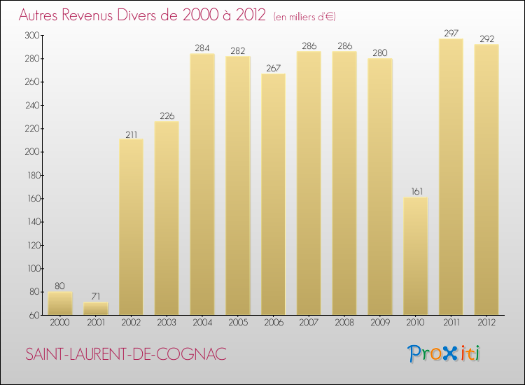 En 2012, le budget de fonctionnement de la commune de Saint-Laurent-de-Cognac se montait à : 700 000 € décomposé comme suit :