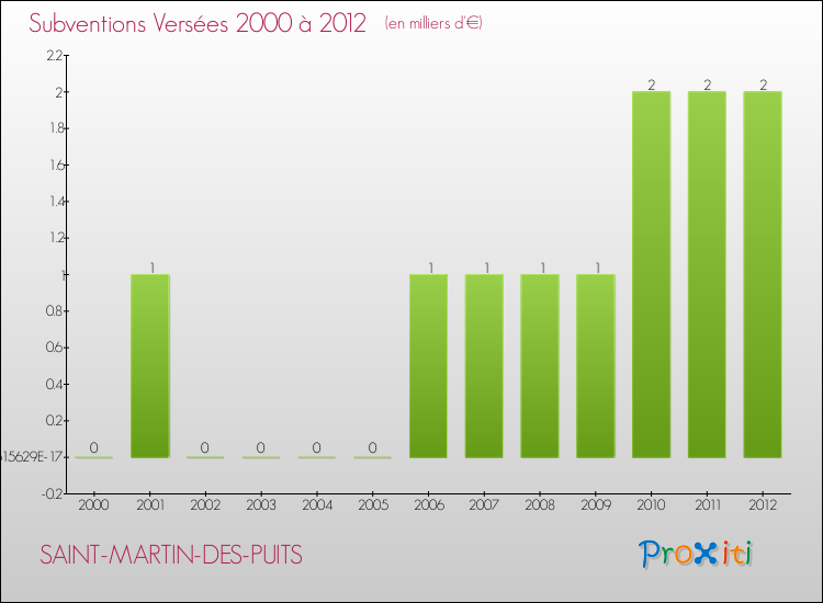 Le résultat comptable de la commune de Saint-Martin-des-Puits s'établissait ainsi à : + 13 000 € fin 2012.