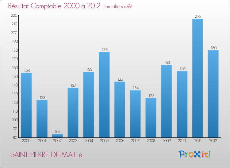 Le résultat comptable de la commune de Saint-Pierre-de-Maillé s'établissait ainsi à : + 180 000 € fin 2012.